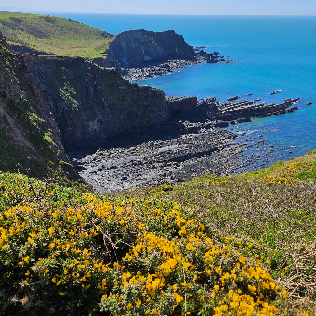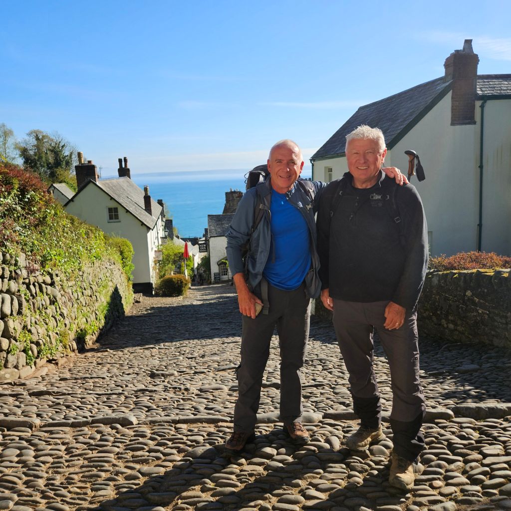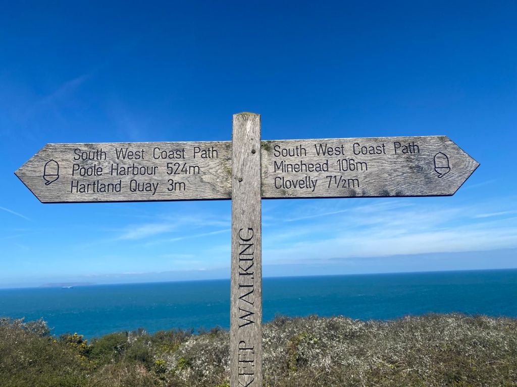 The sun is shining as I meet Dave C half way up the main street in Clovelly, it is some climb to start the day and we are not even on the official path yet. What a day it was to be, a tough Sunday walk that is for sure, but probably the most contrasting day on the path to date. Fields, dramatic cliffs, wooded sections, some very big climbs, dramatic rock formations, and goodbye to Lundy Island which has kept me company for the last four days. So I am turning South towards Cornwall. A beautiful day, with a very poignant end, when I chat to Andrew Wilson with whom we have been crossing paths with all day. Andrew is walking the path for the charity 2Wish that has helped him cope with the tradegy of his son losing his footing and going over a cliff edge whilst walking with his Dad. Top man Andrew and the pain was very obviously still very raw.