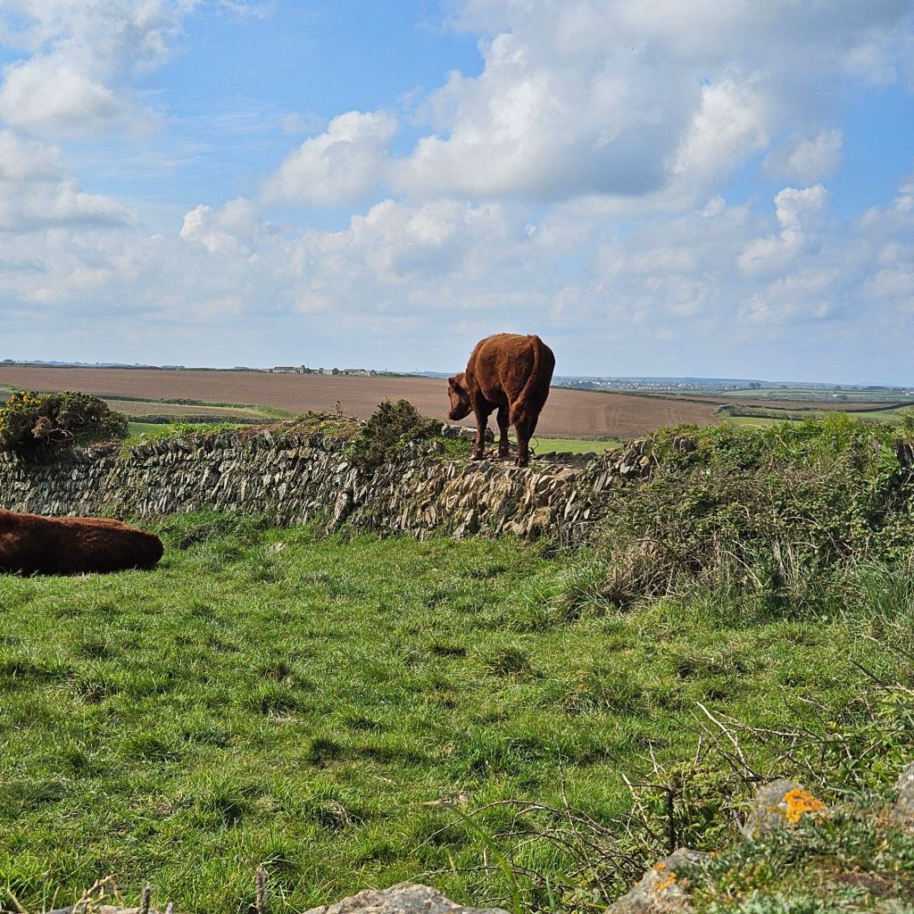 Grey skies out of Padstow but pleased to have the Mammuts (Boots) back on. This was a big day of change, the first signs of mining activity after a long walk back up the Camel Estuary, rolling pastures and cliff tops and then the first beautiful bay at Trevone. On to Harlyn bay, full of activity on a sunny Sunday with mad Brits braving the coldest of seas. Big guns cove, love that, Mother Ivy’s bay, Trevose head, and a stunning golf course at Trevose. Boobys bay, you have to love that, joins to Constantine bay and into Treyarnon. I am asking myself now, “are we there yet Dad” but we are not by a long shot. Peppar cove, warren cove, and fox cove are just waiting for someone to put their toes on them, which is easier said than done. Will’s rock makes me chuckle, and you drop into Porthcothan, so pretty. A long stretch along the cliff tops, seagulls and the odd person for company, and into Mawgan Porth and a bed for the night. Greated by the lovely Keith and Linda Smith who have flown down to take me out to dinner, now that is class. Just under 20 miles covered, great to be back out and the sun shone, which looks like it will not do for a few days now. Stunning change from rock and shale, to wide sandy beaches in the past 72 hours, and a feel of a more built up environment.