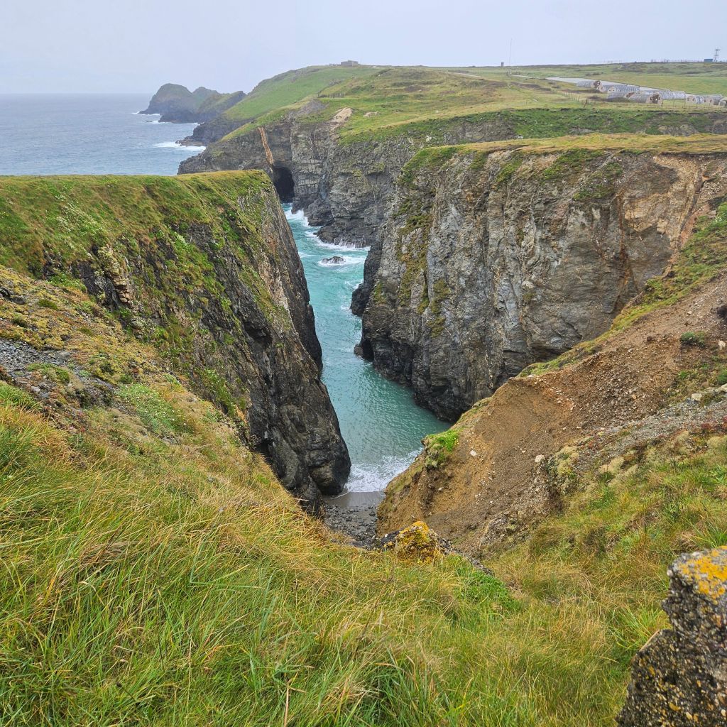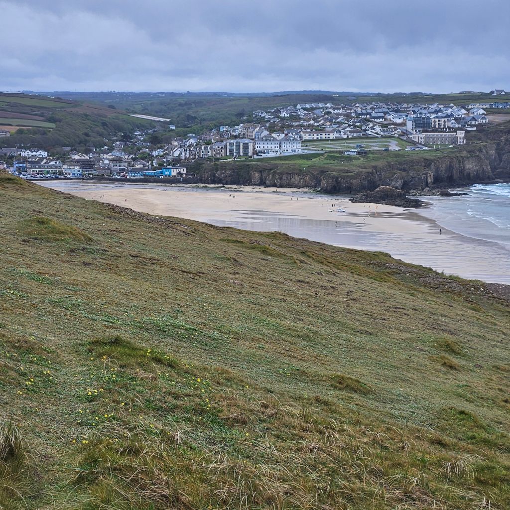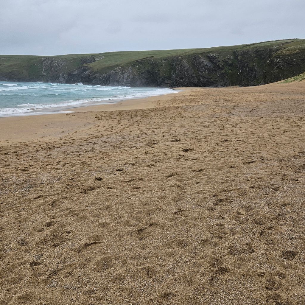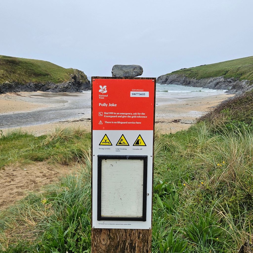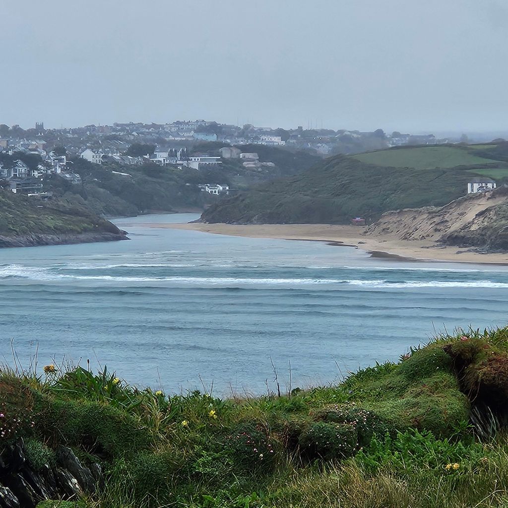 Another wet and windy morning meant the dash at 06.00 to get across the tidal Penpol crossing over the Gannal was not going to happen. Breakfast and then an hour trudging along the main A392 with heavy rain was not exactly lifting my spirits, the other option to missing the tides. But once over The Gannal and into the reed beds, life felt different, tarmac, built form, and people had all gone, and I was back on the very special path. Although the rain was consistant the winds were lighter than yesterday and this makes such a difference. Once past the Southern end of the Penpol crossing the land turns to sand and that was it for the rest of the day. The path generally is solid, and there are areas of coastal pasture but the sand seems to dominate what is a lovely and interesting section. After the lovely Crantock Beach the climb to Pentire Point brings full exposure to the prevailing winds. A drop down to a wonderfully named beach, Porth Joke, up and around Kelsey Head and drop again to Holywell Beach, another fantastic stretch of sand. I meet my first person of the day after nearly two hours, a dog walker braving the elements. A climb to Penhale point, reveals the strange and spooky former army base, Penhale Camp. This provides some interesting distraction as a helicopter is praticing dropping commandos into the camp, lifting and circling, some skill in the wind today. Then onto Penhale Sands, and Perran Beach, two miles long and with dunes up to 150 feet high. The path takes you through the dunes and this is increadibly hard work on dodgy knees. And so it was welcome to round the final dune section and see Perranporth, having past the Haven site that will bring memories back to the mad women campers, not all fond. Soaked to the skin, but with a big smile back on my face, jacket potato with corrination chicken and roasted peppers warms the heart. Bed for the night is a self catered converted garage, quirky, but just perfect. Goodnight.