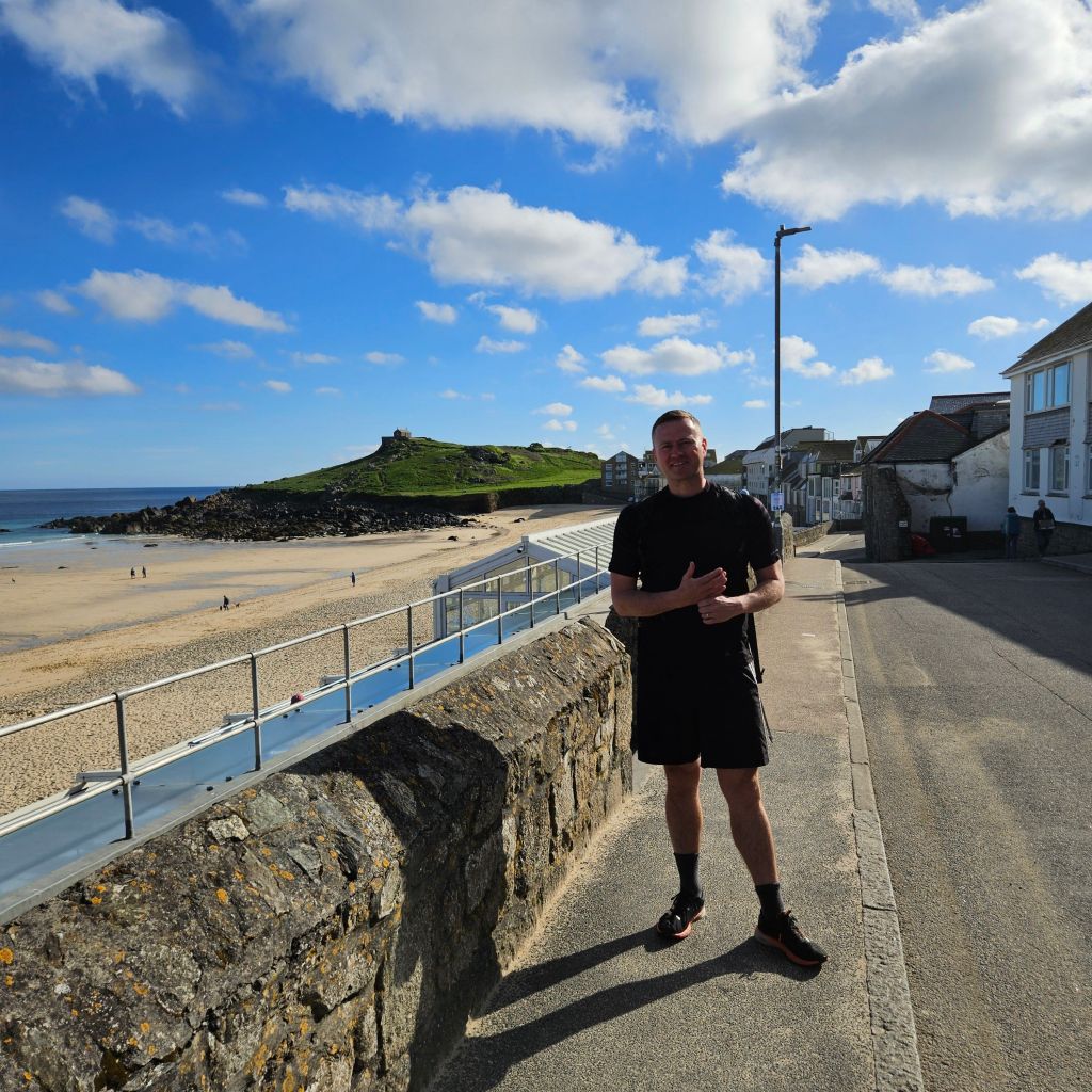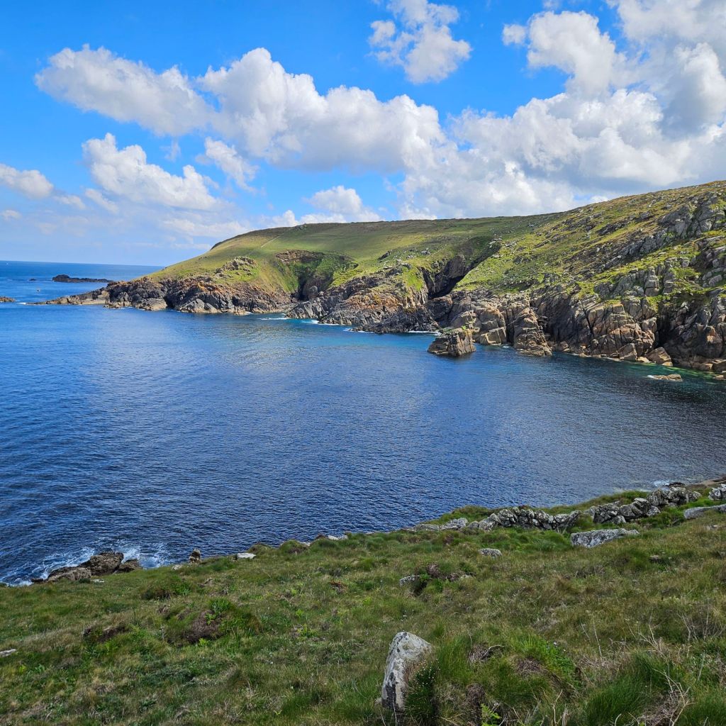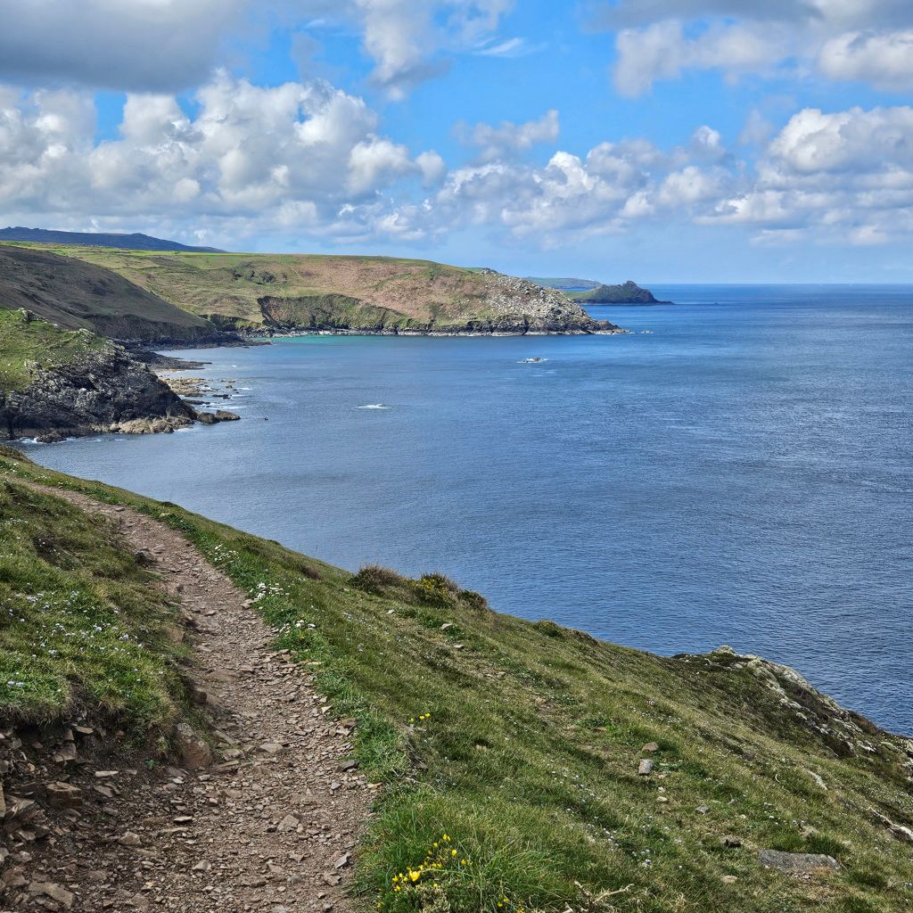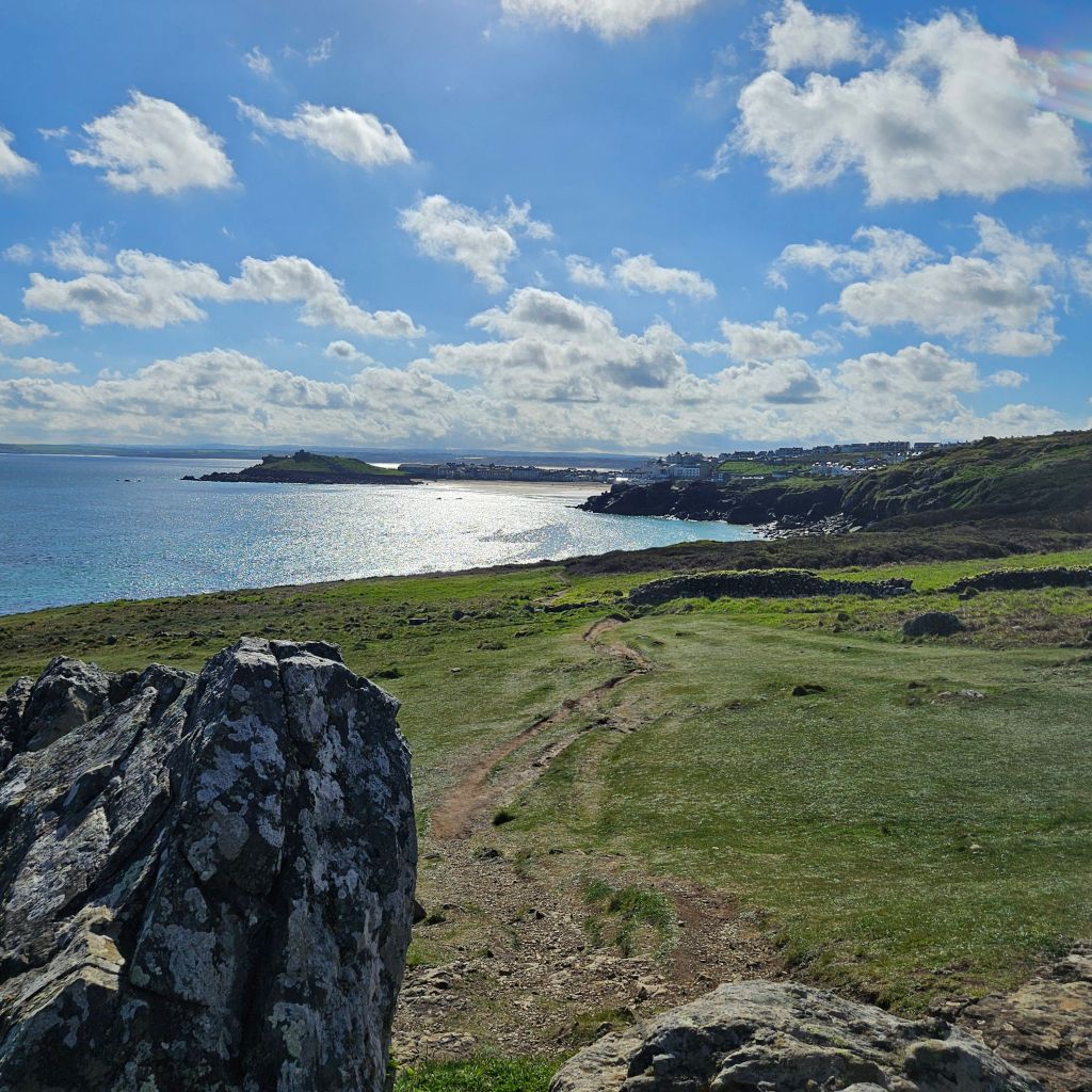 After yesterday surprise arrival it was great to meet Gav in a very sunny St Ives for what had been described as one of the toughest sections of the SWCP. The guide book describes it as having the character of remote and lonely, tough going with rock scrambles, and boggy lengths. But as I have said before, wiser people than me have told me that I will remember the tough sections and this section was tough. This is not laid out as a path, it is a rock face laid flat, with every single obstacle that has ever been naturally made. Everything was dandy walking through the waking streets of lovely St Ives, around the town and out along the back of Porthmeor Beach, and up on to the path to Claggy Point. From here the path becomes a side on mountain climb, but with some of the most amazing views experienced to date. You need big will power to lift your head to look at this wonderful section of path, stark cliffs, rock pinnacles, wonderful coves and sea colours that are beyond belief. A tough climb and decent around Carn Naun Point opens up to the beautiful River Cove and the Economy Cove. Gav in his shorts and trainer is tackling this like a Sunday afternoon walk, even when his trainers start to disintergrate. The going is really slow,, you just have to pick you way over, around and along huge boulders, and this seems incessant all the way to Zenor Cove. Now lesser men would bail out at this point go to the Tinners Arms, and have a nice afternoon in the pub. Oh how I had to fight that thought. More ups and downs take you on past Horseback Zawn, Pendor Cove and Veor Cove. It’s tough going but we plough on, eventually rising to be level with Gurnards Rock, and people even madder than us, who are climbing the sheer cliff faces and the rock stack at Ebal Rocks. You realise that this world is full of people who do challenge themselves and just love the outdoor world. The sun is shining, the winds are light and we can see in the distance, some distance the goal for today the lighthouse at Pendeen watch. As we turn Porthmeor Point we meet a couple sitting on the edge of the cliff watching a shoal of fish in the transluscent waters of Porthmeor Cove below. It is so difficult to describe the colours, hopefully the photos do it justice. We have managed most of the serious rocks and are now negotiating a bog, where the rocks are welcome assteppingg stones. Thelighthousee has now gon, and the old sayin, “If you think you are nearly there you are not comes back. Three more miles of tough ground, past Porthmoins Cove, Brandy’s, Whirl Pool, Wolf Rocks, Greeb Point, and the beautiful Portheras Cove. One last climb up to Pendeen Watch and the waiting family collection. Only one thing for it, straight back to the Tinners Arms for a well earned pint and dinner. They tell you its 14 miles, but believe you me, it’s more than that, a really tough but rewarding section.