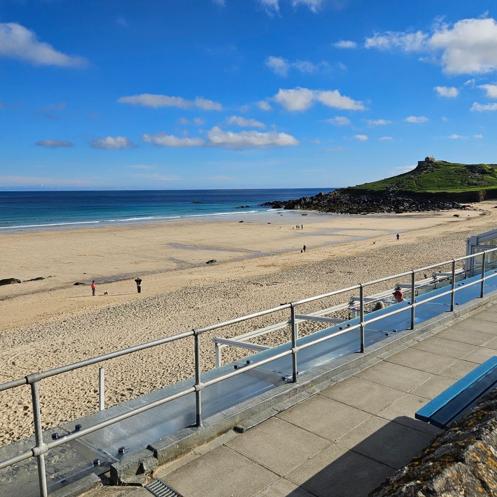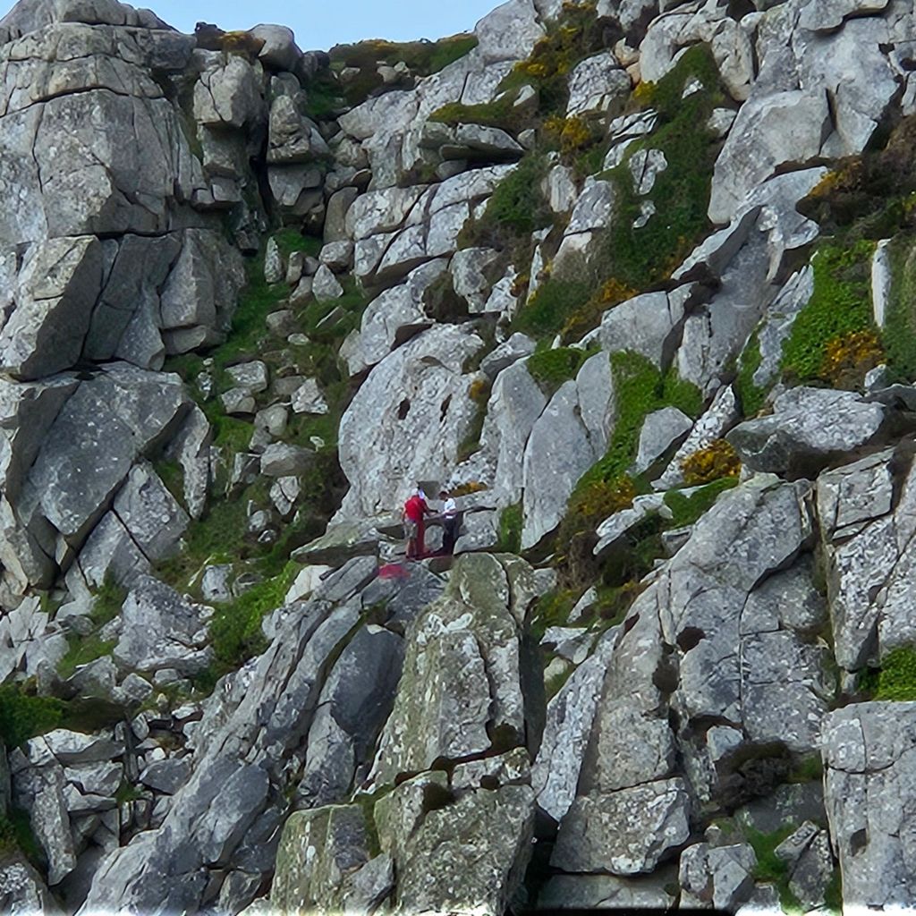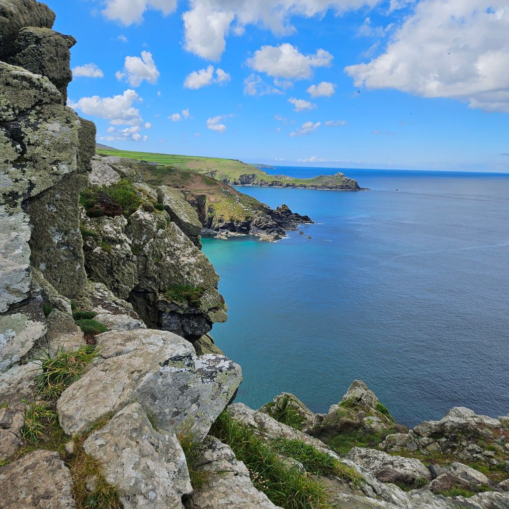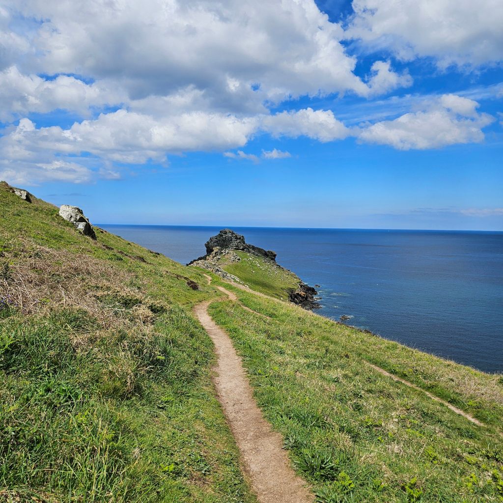 After yesterday surprise arrival it was great to meet Gav in a very sunny St Ives for what had been described as one of the toughest sections of the SWCP. The guide book describes it as having the character of remote and lonely, tough going with rock scrambles, and boggy lengths. But as I have said before, wiser people than me have told me that I will remember the tough sections and this section was tough. This is not laid out as a path, it is a rock face laid flat, with every single obstacle that has ever been naturally made. Everything was dandy walking through the waking streets of lovely St Ives, around the town and out along the back of Porthmeor Beach, and up on to the path to Claggy Point. From here the path becomes a side on mountain climb, but with some of the most amazing views experienced to date. You need big will power to lift your head to look at this wonderful section of path, stark cliffs, rock pinnacles, wonderful coves and sea colours that are beyond belief. A tough climb and decent around Carn Naun Point opens up to the beautiful River Cove and the Economy Cove. Gav in his shorts and trainer is tackling this like a Sunday afternoon walk, even when his trainers start to disintergrate. The going is really slow,, you just have to pick you way over, around and along huge boulders, and this seems incessant all the way to Zenor Cove. Now lesser men would bail out at this point go to the Tinners Arms, and have a nice afternoon in the pub. Oh how I had to fight that thought. More ups and downs take you on past Horseback Zawn, Pendor Cove and Veor Cove. It’s tough going but we plough on, eventually rising to be level with Gurnards Rock, and people even madder than us, who are climbing the sheer cliff faces and the rock stack at Ebal Rocks. You realise that this world is full of people who do challenge themselves and just love the outdoor world. The sun is shining, the winds are light and we can see in the distance, some distance the goal for today the lighthouse at Pendeen watch. As we turn Porthmeor Point we meet a couple sitting on the edge of the cliff watching a shoal of fish in the transluscent waters of Porthmeor Cove below. It is so difficult to describe the colours, hopefully the photos do it justice. We have managed most of the serious rocks and are now negotiating a bog, where the rocks are welcome assteppingg stones. Thelighthousee has now gon, and the old sayin, “If you think you are nearly there you are not comes back. Three more miles of tough ground, past Porthmoins Cove, Brandy’s, Whirl Pool, Wolf Rocks, Greeb Point, and the beautiful Portheras Cove. One last climb up to Pendeen Watch and the waiting family collection. Only one thing for it, straight back to the Tinners Arms for a well earned pint and dinner. They tell you its 14 miles, but believe you me, it’s more than that, a really tough but rewarding section.