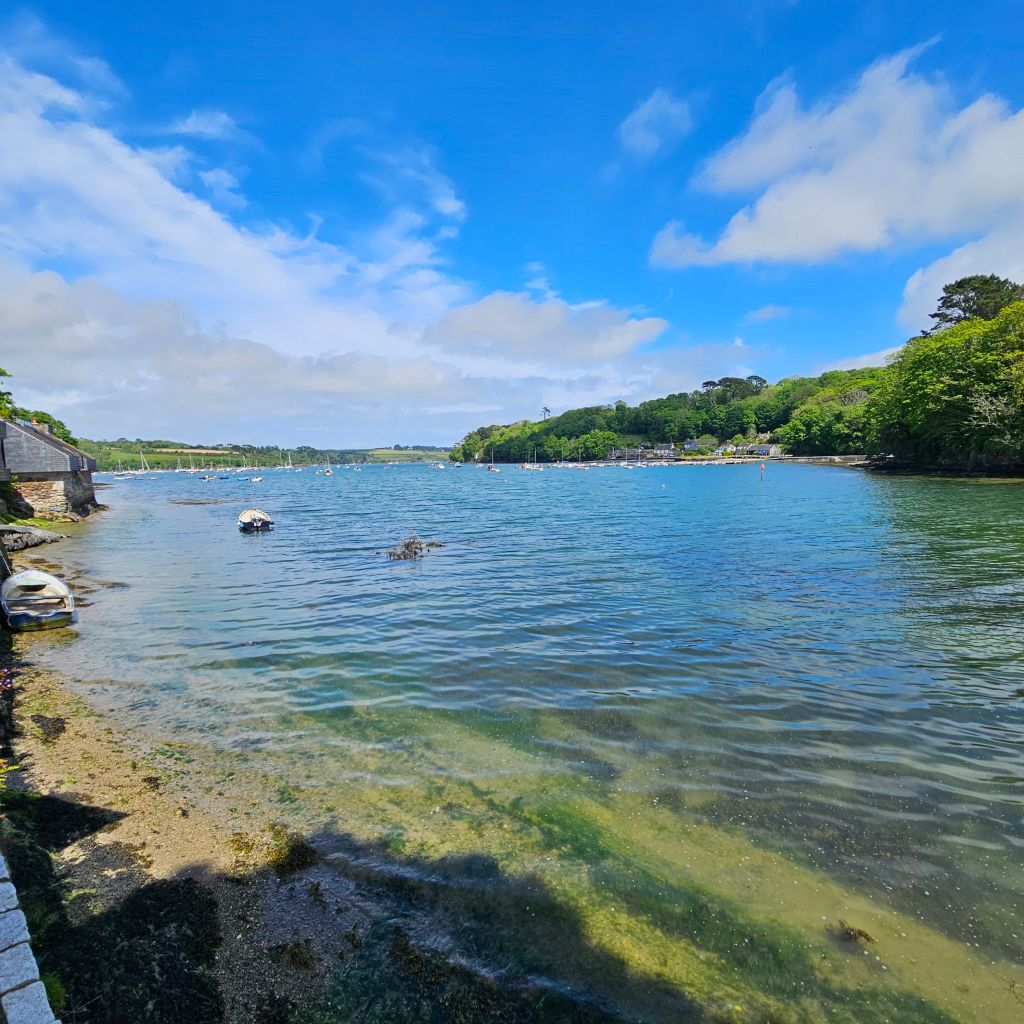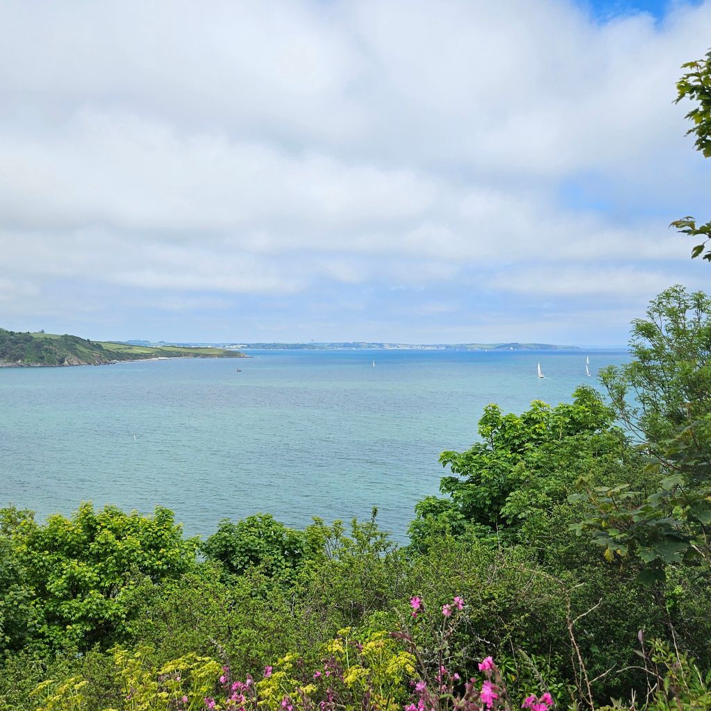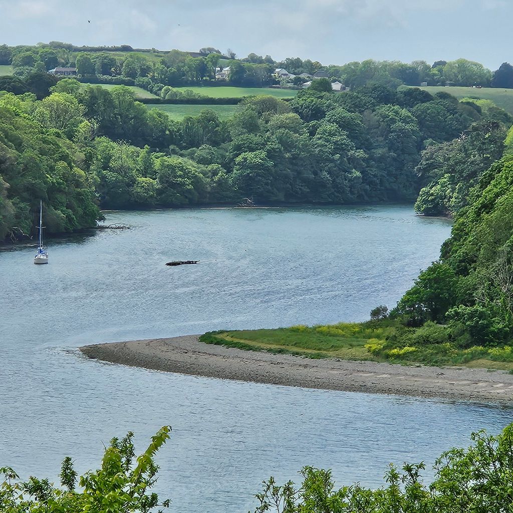 Today was a completely different day, the path changes from dramatic cliffs and beaches to quarry workings, rural field paths, and then the most beautiful of coastal inlets where we end at Helford along the side of the Helford River. Once again I was joined by Tim and Maisey, and we were greeted by a stunning morning. The path starts along a lowland marsh and very soon you pass the former quarry workings, at Deans Quarry. After Godrevy Cove the path is now diverted inland to avoid the working quarries, into the lovely hamlet of Rosenithon. After Trenance you arrive at the little bay of Porthallow. We engage in conversation with a boatbuilder, and I take photographs of the rear of the sign that confirms you have reached the halfway point. It is only at the end of the day that it is pointed out to me that the seaward side declares the milestone so we have to return to confirm. The path follows the coastline to Nare Point, and turns into Gillians Creek. If you are lucky with the tide you can cross on stepping stones, if not it’s anotherv 2.5b miles around the creek. You guessed it, another 2.5 miles added. This now becomes one of the most enchanting sections of the path, and is definately “Swallows and Amazions” country. We head out to Dennis Head and meet “Hairy Dave” the Cornish version who needs a hand installing a memorial bench. All well and good but he has left it back at the yard. So then a very plesant 1.5 miles back into Helford, through an enchanted wood, and a wonderful creek. This is a special place. No wonder a lot of (famous) people choose to reside here.