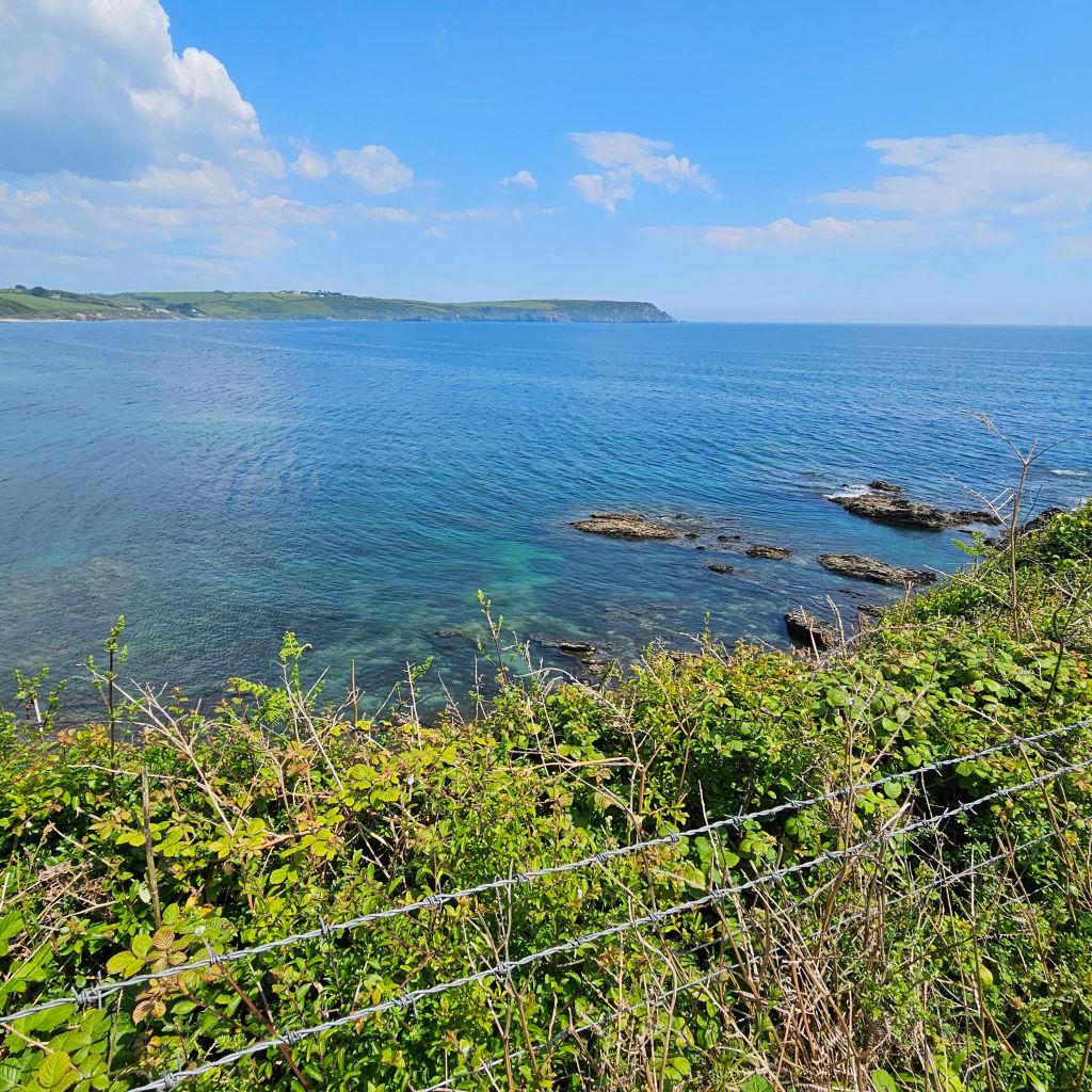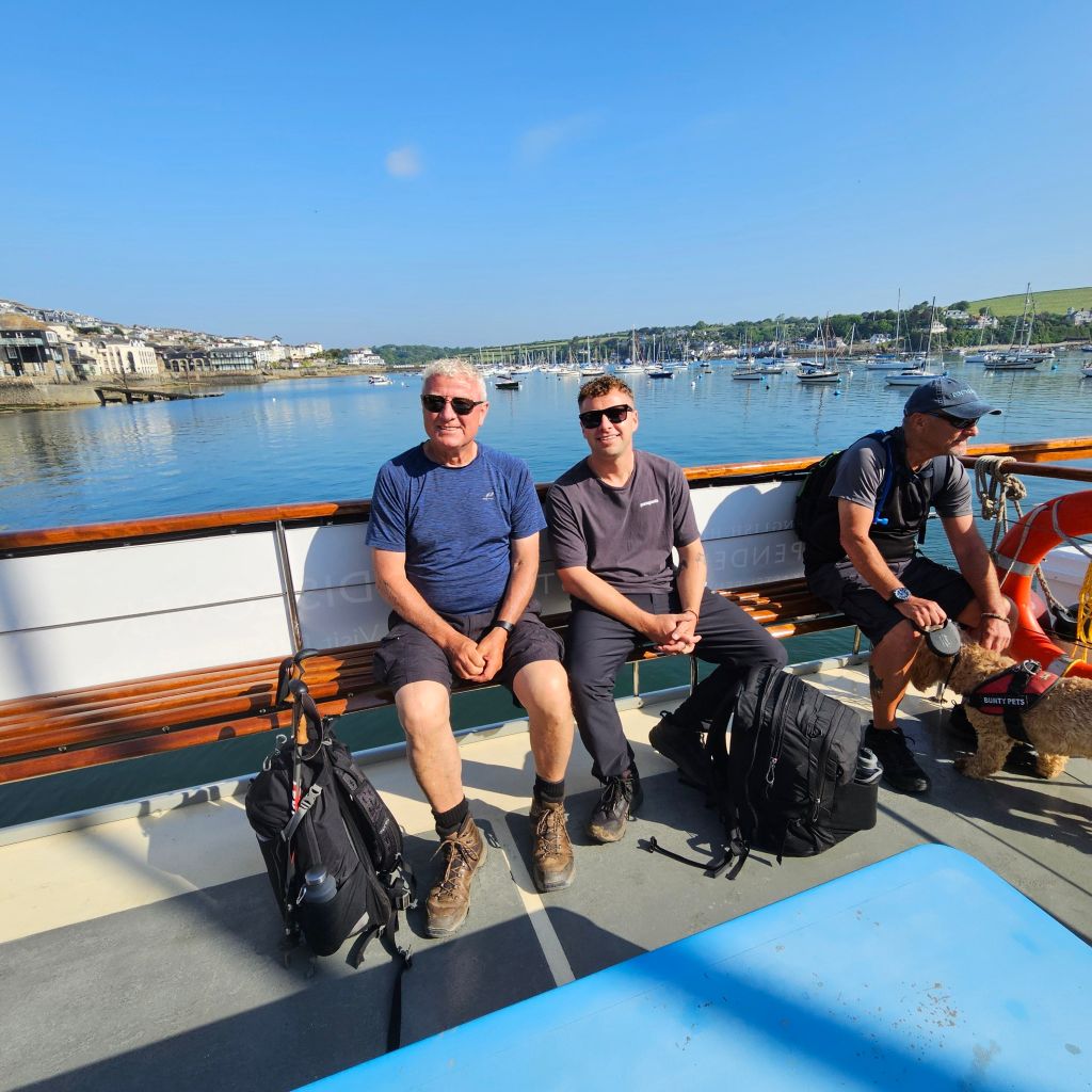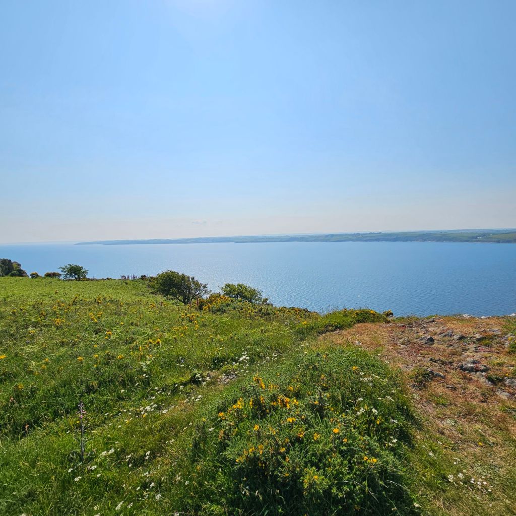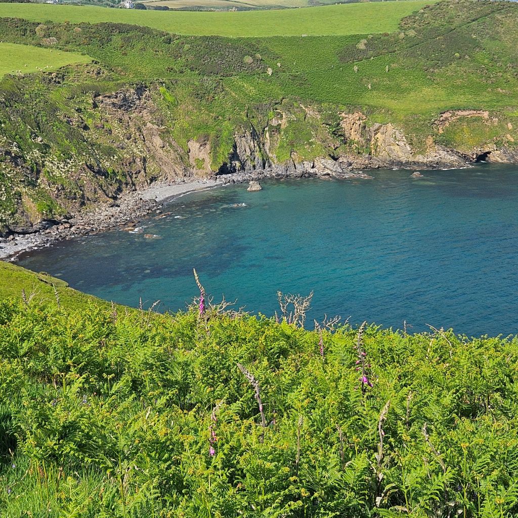 So today started with an early breakfast with my youngest son Sam. We made it to the first ferry out of Falmouth to St Mawes, yes this is part of the coastal path, and then straight on to the little ferry that takes you to a place called Place. A magical start with a flat calm estuary to the River Fal, and two lovely small craft transporting you to what feels like another world. One of my favourite songs, and certainly on my desert Island Discs is “On days like these” by Matt Munroe. I am not too bothered by the words, (as is Matt as he starts off in Italian, and then breaks into La, la, la.) But it opens with “When skies are blue and fields are green, and today the skies were truly blue and the fields were very green. This is another must do section of the path taking you away from the built up Falmouth, and eventually landing you into a magical smugglers cove at Portloe. Sam and I laughed at the cafe in St Mawes called Cafe Chandlers, and then we were into a magical wood with a lovely little Church, before heading out to St Anthonys Head. From the high point the path is fairly friendly all the way to Porthscatho. If you have not been here put it on your list. A nice cafe catches Sam’s eye and we stop for tea and a sandwich. A lovely little seaside village, with people again enjoying the loveliest of days. The path starts to become more of an undulating section revealing some truly beautiful hidden beaches, Porthcurnick beach, then Porthbeam Beach, and we reach Pendower Beach, where we stop once more. Sam likes a service station !!!! This is part of Cornwall I have not visited but is it just lovely, on a beautiful Sunday afternoon. We discuss why the little hotel is boarded up, but it becomes obvious that nature is taking the land back, and more than likely the hotel with it soon. It all gets a bit more testing now, as we negotiate the climb towards Nare Head. Tregagles hole tells the story of a big drop and climb, but we battle on and reach the foreland at Nare Head. The achievement of the day so far is now visual as you can see for miles here, it also details what lies ahead for me. Portloe is nowhere to be seen so two more up and downs have to be negoiated before we arrive in a very pretty inlet that is Portloe. A wonderful Dad and Son day, with the addtion of meeting Scott and Linda from Canada, very lovely people, and the fantastic couple who run the local camp site, who charge £4.80 for backpackers and never ever turn anyone away. Days like these are rare, and I loved every single second of it. Another 14 miles chalked off.