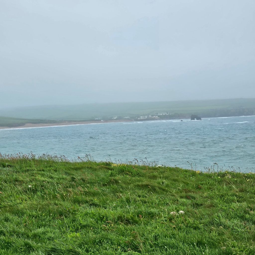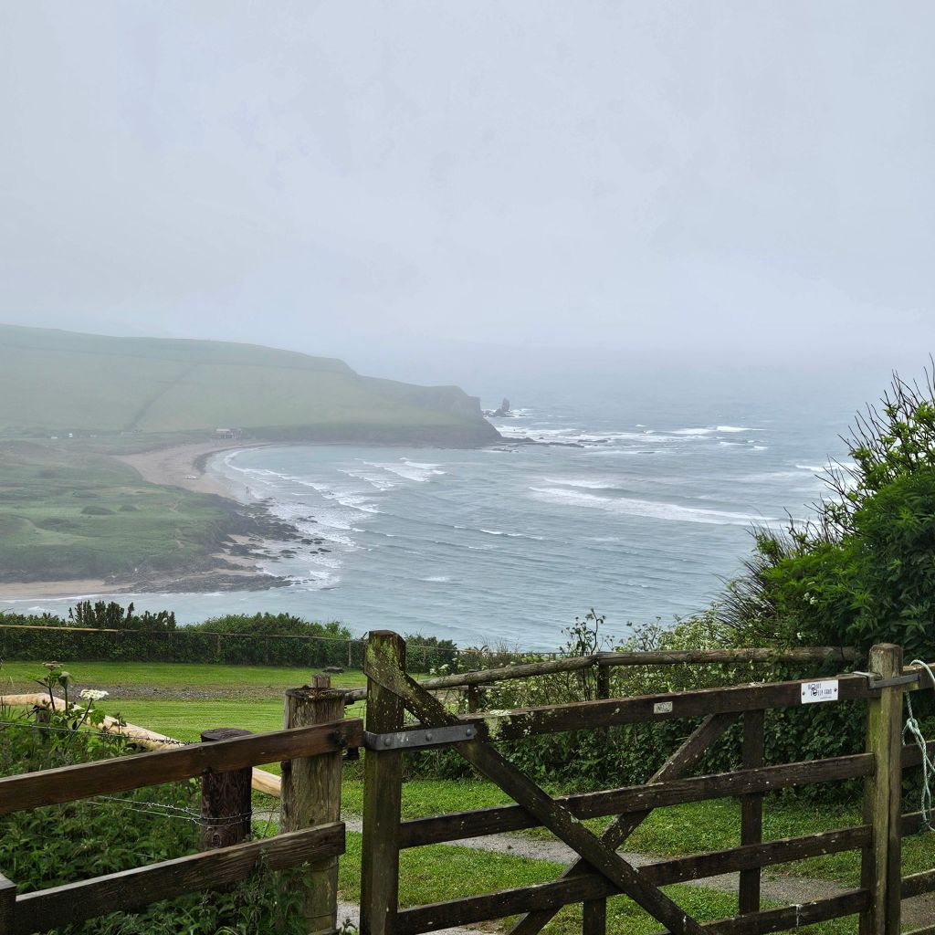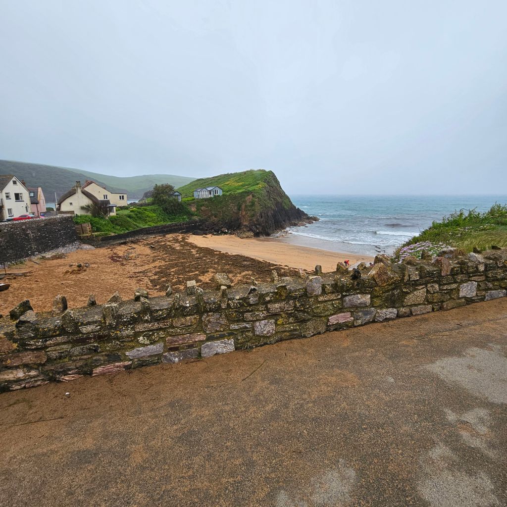 So the schedule is a bit all over the place as I have the family here and can be ferried around a bit: My rest day was not a rest day so trying to knock a few miles off whilst I have the transport and the motivation. If you ever go anywher on holiday, check where the Kemps are going, because be assured if they are there it will be raining. And so it was as Richard got us down some pretty tight country lanes to get us close to the East side of the Erme. The first mile and a half was a romp along lanes that turned into dirt tracks, a moat formed on the road and paths through fields, but Richard enjoys his DOE work and knows how to get us on the path. THe clouds were pretty angry and the drizzle and mizzle was trying to dampen out spitits but we were having none of that. The pth is fairly friendly and then we climb to get out of Hoist Point, quite a climb early on. We work our way to the lovely Challaborough beach and th not so lovely Challaborough holiday park. Refreshments smell good but we resist as we have to be at the river Avon between 10.00 and midday to get the ferry. We round the headland at Warren Point and the wonderful Burgh Island comes into view. There is a causeway across to the island, and I am told that the art deco hotel is worth visiting, but not today. 2 miles inland we drop to the ferry point with time to spare, but no ferryman in site. The sign says “ring the bell and wave at the thatched boathouse” we duly ablige, to be greeted by a whisrle 500 yards back down the estuary. The ferryman is a jolly chap and his dog stands guard at the front of the boat as we cross. The weather is now starting to close in but there are still people out kits surfing, wake boarding, surfing and making the most of it in true British spirit. We head through a car park and rest at a really funky airstream, with two great characters serving in their own time. Refreshed and revived we head towards our pick up destination at Hope Cove, some hope and no hope. We are well ahead of schedule, my son in law is six foot two, and he takes one stride for my three so we are motoring. The family are still having fun at a water park in Torquay, so we decide to press on not really taking much notice of the weather system enveloping us. A climb out of Hope, and out on to the headland at Bob Tail, the site of an ancient monastery. Now the weather Gods are not happy the inshore winds are pusing us all over the place and the rain is starting to hurt as it hits our faces. We cut slightly inland for some restbite and can see nothing of our destination at Bolberry Down. We press on and eventually head North to reach the village of Bolberry, and our carriage pulls up to rescue us from the elements. An exhilarating walk another 20 Kl, and leaves me a small section into Salcombe to tidy up in the next two days. The family have had a lot of fun, and Richard and I have enjoyed taking on the path in all weatehrs in one day. A warm bath is now on the menu. The wife arrives this evening, better tidy up the hotel room. The photos show where we have been, there are some lov