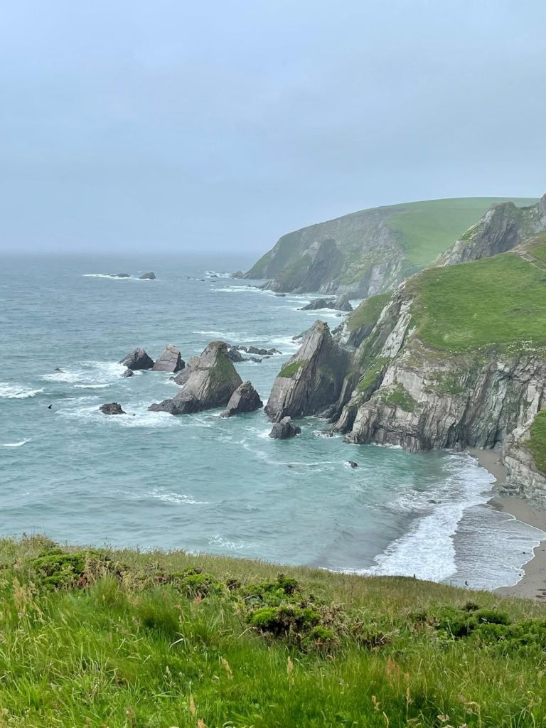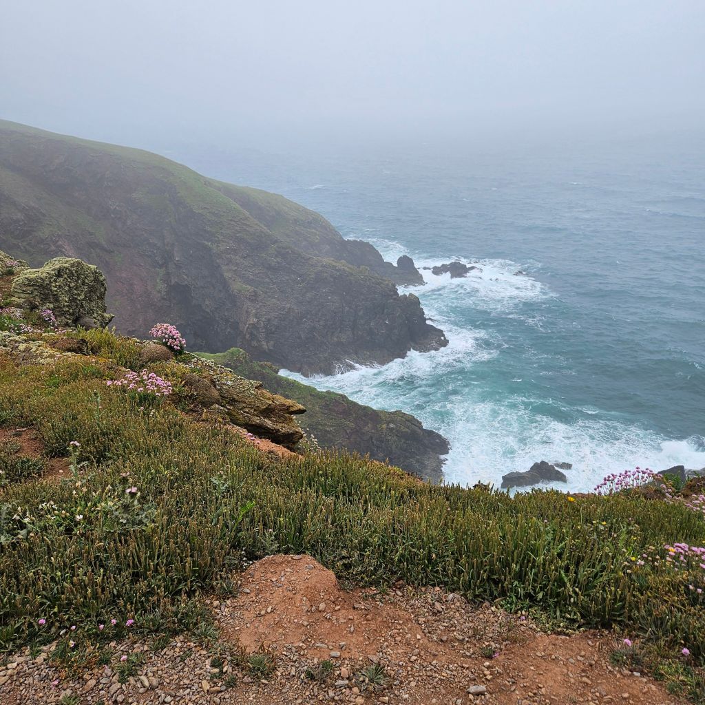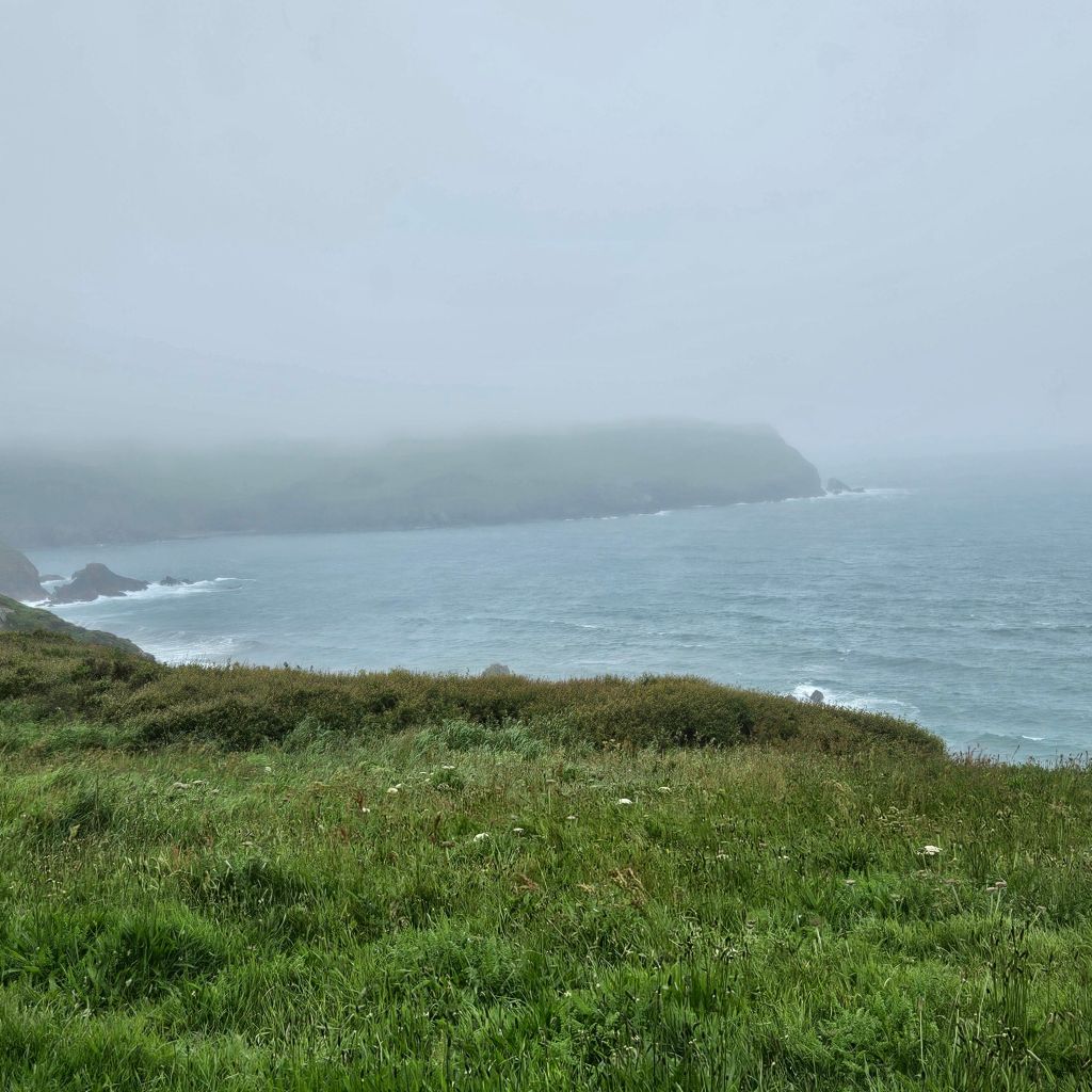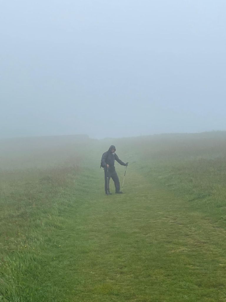 So the schedule is a bit all over the place as I have the family here and can be ferried around a bit: My rest day was not a rest day so trying to knock a few miles off whilst I have the transport and the motivation. If you ever go anywher on holiday, check where the Kemps are going, because be assured if they are there it will be raining. And so it was as Richard got us down some pretty tight country lanes to get us close to the East side of the Erme. The first mile and a half was a romp along lanes that turned into dirt tracks, a moat formed on the road and paths through fields, but Richard enjoys his DOE work and knows how to get us on the path. THe clouds were pretty angry and the drizzle and mizzle was trying to dampen out spitits but we were having none of that. The pth is fairly friendly and then we climb to get out of Hoist Point, quite a climb early on. We work our way to the lovely Challaborough beach and th not so lovely Challaborough holiday park. Refreshments smell good but we resist as we have to be at the river Avon between 10.00 and midday to get the ferry. We round the headland at Warren Point and the wonderful Burgh Island comes into view. There is a causeway across to the island, and I am told that the art deco hotel is worth visiting, but not today. 2 miles inland we drop to the ferry point with time to spare, but no ferryman in site. The sign says “ring the bell and wave at the thatched boathouse” we duly ablige, to be greeted by a whisrle 500 yards back down the estuary. The ferryman is a jolly chap and his dog stands guard at the front of the boat as we cross. The weather is now starting to close in but there are still people out kits surfing, wake boarding, surfing and making the most of it in true British spirit. We head through a car park and rest at a really funky airstream, with two great characters serving in their own time. Refreshed and revived we head towards our pick up destination at Hope Cove, some hope and no hope. We are well ahead of schedule, my son in law is six foot two, and he takes one stride for my three so we are motoring. The family are still having fun at a water park in Torquay, so we decide to press on not really taking much notice of the weather system enveloping us. A climb out of Hope, and out on to the headland at Bob Tail, the site of an ancient monastery. Now the weather Gods are not happy the inshore winds are pusing us all over the place and the rain is starting to hurt as it hits our faces. We cut slightly inland for some restbite and can see nothing of our destination at Bolberry Down. We press on and eventually head North to reach the village of Bolberry, and our carriage pulls up to rescue us from the elements. An exhilarating walk another 20 Kl, and leaves me a small section into Salcombe to tidy up in the next two days. The family have had a lot of fun, and Richard and I have enjoyed taking on the path in all weatehrs in one day. A warm bath is now on the menu. The wife arrives this evening, better tidy up the hotel room. The photos show where we have been, there are some lov