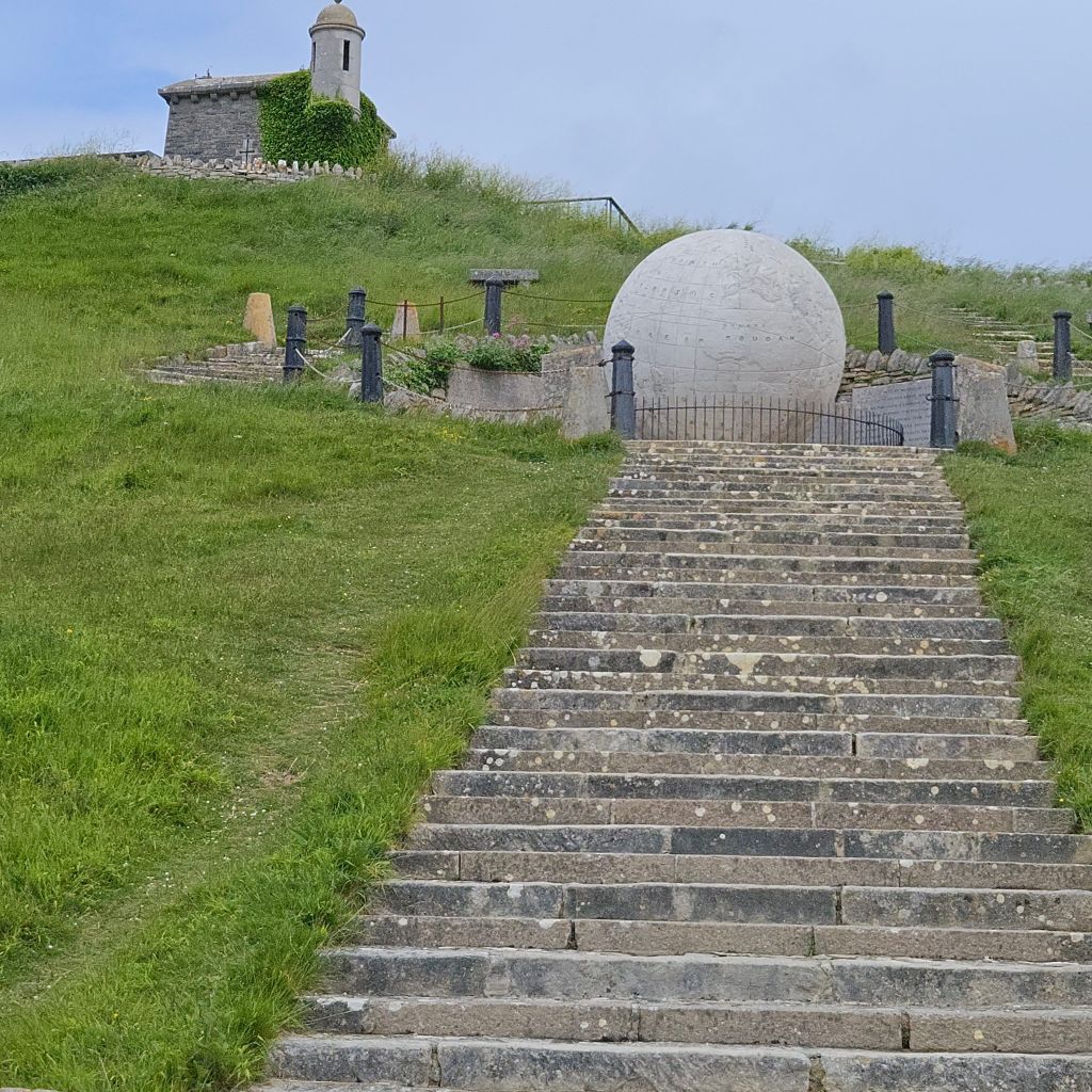 And so to the final leg of this wonderful journey. I am joined by four companions, Gavin (my Son), Graham for the second day, Pete Hoyles and Matthew Nicholls, friends for over 35 years. The weather gods are not happy as Gav and I make our way to meet the oteher in the quarry at Winspit Bottom. Slaps, hugs and kisses and we are on our way with an immediate climb up East Man and the skies are already clearing. We soon drop back down into Seacombe Quarry and thn back up to Seacombe Cliff. All are in good spirits, and are pleased to be part of the final leg (at this stage). We soon come to the strangely named Dancing Ledge, which looks like a flat dance floor on the edge of the sea. A number of stiles lead on to this, so the assumption is that perhaps dancing or similar activities take place here. We are now on a high level flat walk all the way to Durlstone Head. After a brief rest at the lighthouse at Anvil Point, we join the path around Durlston Castle, with its massive stone globe, which is one of the largest stone spheres in the world, weighing 40 stone, and is 3 metres in diameter. Strangely it was constructed in Greenwich and brought to Durlston by sea, very impressive. After rounding the headland we continue on a carriage drive to Peverill Point, and drop down into Swanage. The town is alive and lots of people are enjoying their lunches. We stop for tea and cake, or cockles in Gav’s case. A couple of our team are now starting to tire, but we push on. Along the sea front at Swanage with school parties studying geology (we assume) and then a fairly big climb up to Ballard Point. Some grumbles but we are now at the paek of todays walk and it’s flat from here. We can now view the Isle of Wight, which looks strangely large in the fine haze. Along Old Nick’s ground and we are at the Pinnacles and Old Harry Rock, its downhill all the way from here. Through Studland wood, we pop out in the village of Studland and despite hugh temptation pass the Bankes Arms, go around the “Pig on The Beach” and find ourselves at Redend Point with its concrete bunker where it is said Churchill and Eisenhower witnessed the final preperations for the D Day landings. We drop down on to the magnificant beah around Studland Bay, including the nudest section, but we avoid the temptation and stay fully clothed. Roundind the final corner at Shell bay I am greeted by the sight of Wife, Daughter, three grandchildren, Son in law, his brother, Mum and Step Dad and our good friends Jane and David. Fighting back emotion I walk through their thoughtfully prepared finishing banner/tape, and on to the metal sculpture that marks the end of the South West Coast Path. 630 miles completed and never to be forgotton. I will add my thoughts and thanks for the whole journey but must thank Gav, Graham, Pete and Matthew for getting me to the finish line, I think a couple of them will sleep well tonight.